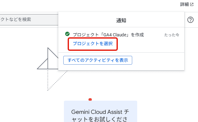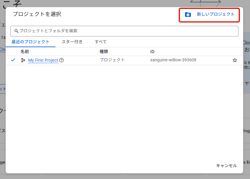 画面左上のプロジェクト選択ボックスから「新しいプロジェクト」を選択します。