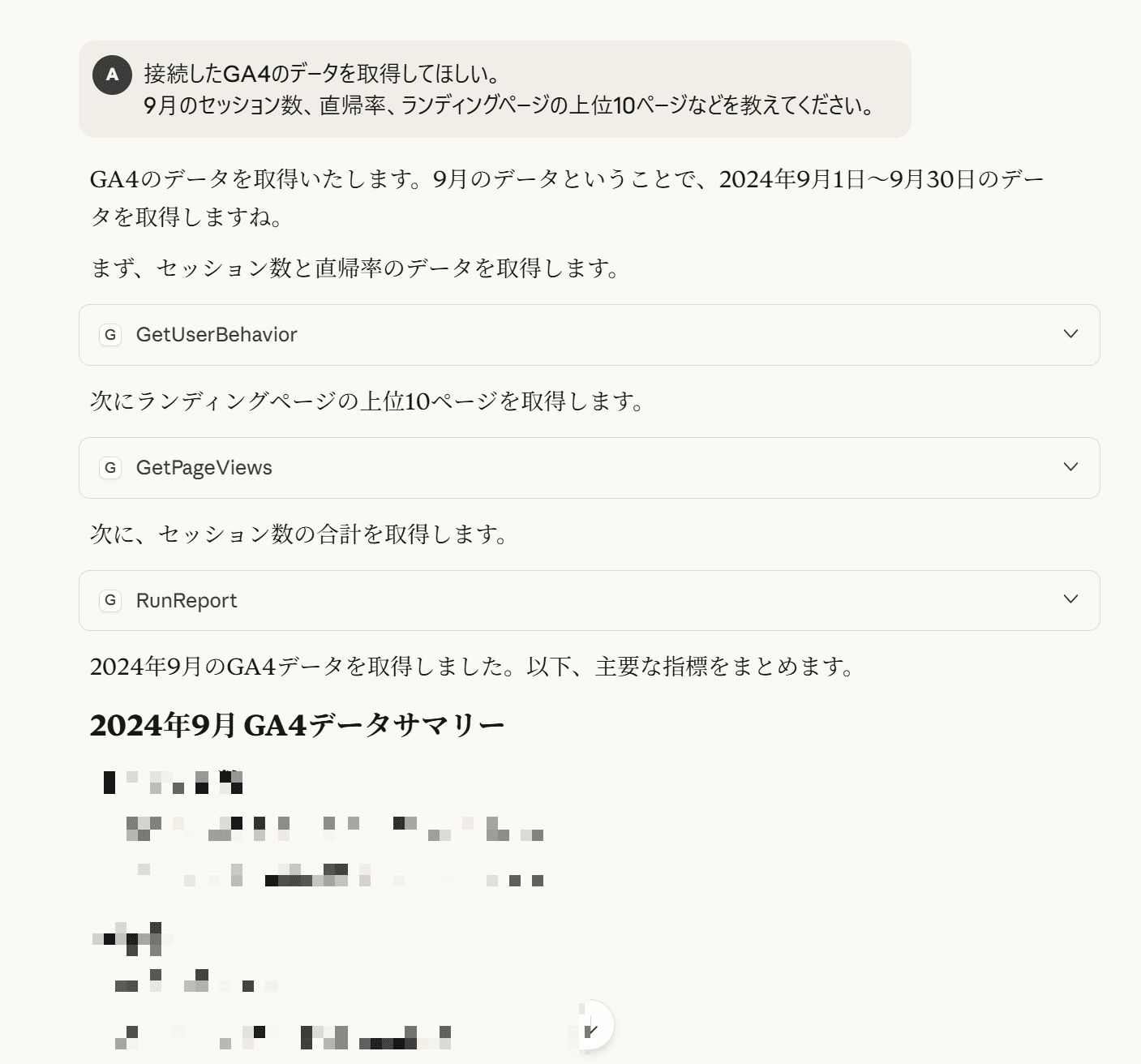 この設定が完了すれば、まるで専門のアナリストと会話するように、自然な言葉でGA4のデータを引き出し、分析することが可能になります。